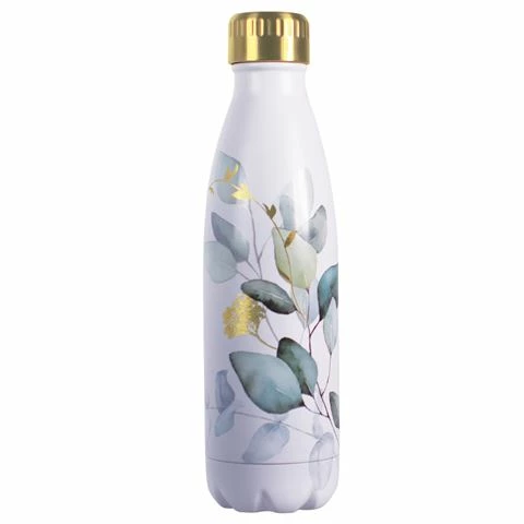 Keep yourself hydrated no matter where you are, with this stylish Fluid Vacuum Bottle Eucalyptus Leaf by Avanti. With a 18/8 double wall stainless steel inner and outer skin construction, this bottle is BPA free, condensation free, vacuum sealed, and can keep your drinks cold for 24 hours or hot for 12 hours.