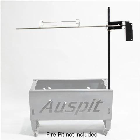 The Auspit Compact Portable Camping Spit Rotisserie Package – Original is the first of three portable spits packages available in the Australian designed Auspit range. This battery-operated portable camping spit can cook up to 8kg of balanced meat on its swinging rotisserie skewer. It is unique, easy to use and comes with all the basics you need for your first outdoor camping spit roast.