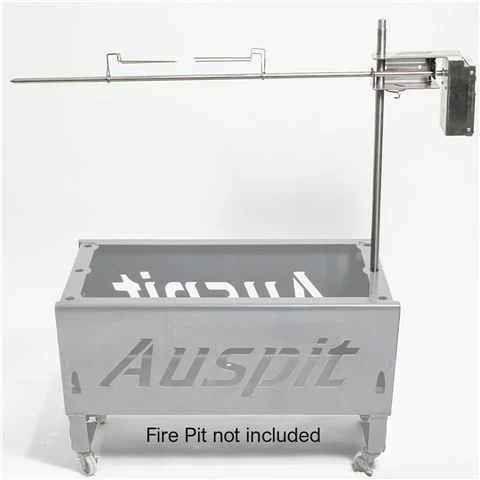 The Auspit Compact Spit Roast Kit – Silver is battery operated and can cook up to 8kg of meat. It is unique and easy to use. You can swing your food away from the fire to carve, adjust or based your meat, It is portable, compact and easy to setup. Full stainless steel portable outdoor rotisserie package made with 304 stainless steel. Ideal for areas where rust is an issue.