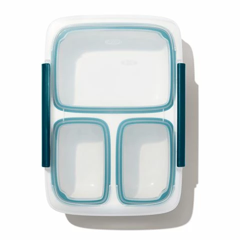 The OXO Good Grips Prep & Go 4.1-Cup Divided Container is twice as nice because it features two compartments in one. Fill one side with grilled chicken and the other with veggies, or use it for soup and a salad, or oatmeal with fruit, and so on.